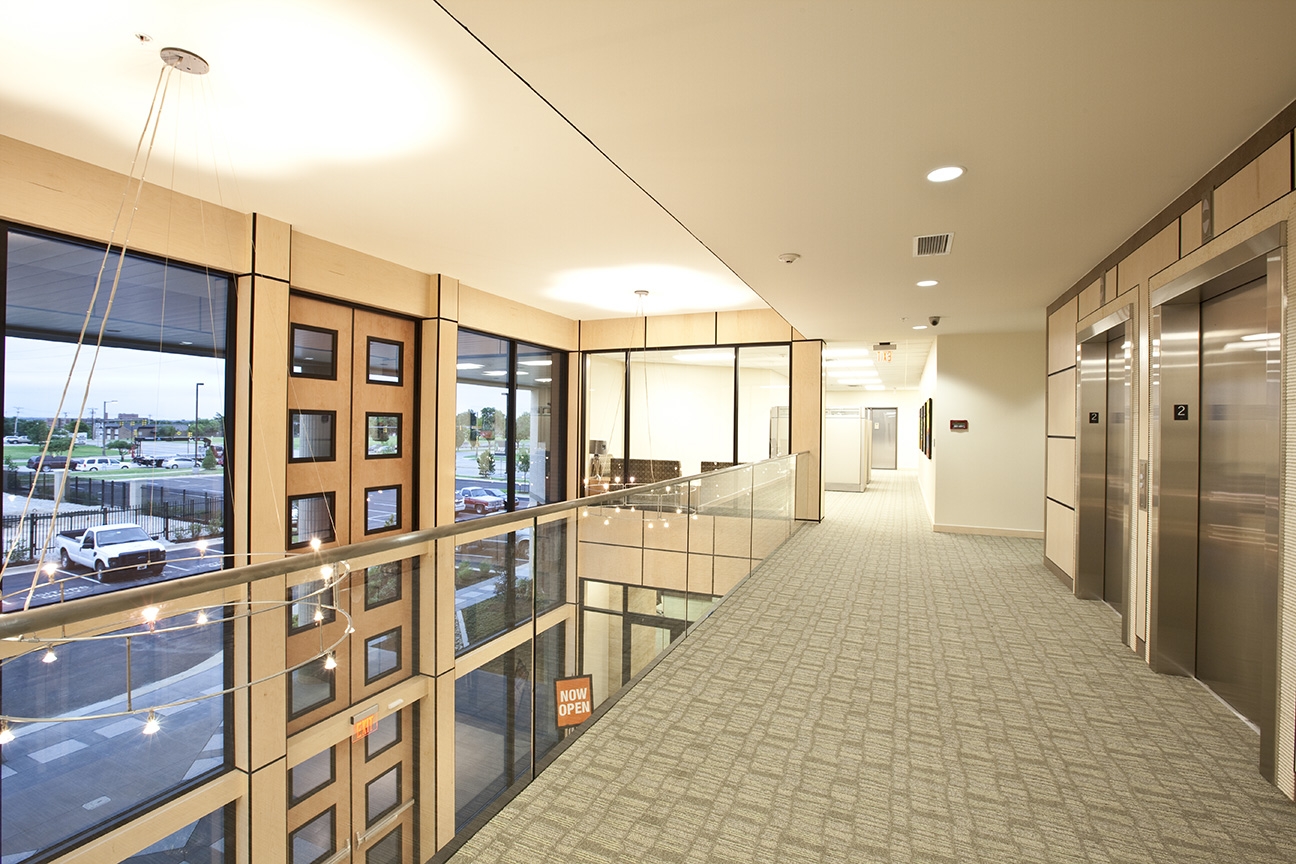 Windows were added throughout the space to create an inviting environment, and the building also features a 2,500 square foot conference center, and a 16,000 square foot leasable space that can be used by outside organizations that need to be located near the Oklahoma Health Center Campus. The building is composed of structural steel, with a brick veneer exterior, and interior finishes were designed to blend harmoniously with the existing spaces.
